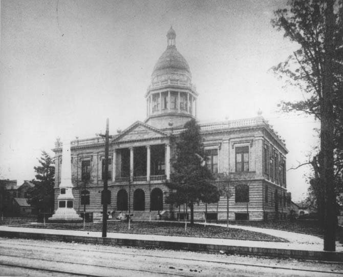 The fourth Mecklenburg County Courthouse was located at Third and Tryon Streets.