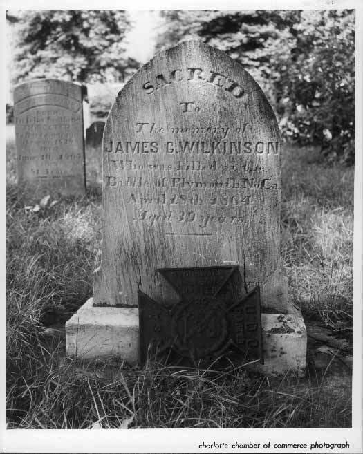 Gravestone of James G. Wilkinson in Old Settlers Cemetery. This is the oldest cemetery in Charlotte. It is located at the corner of 5th and Church Streets