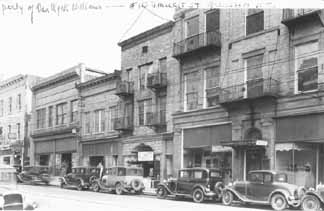 A photograph of 123 W. Market Street in Greensboro, North Carolina. The third building from the right is identified as the property of VanWyek Williams.