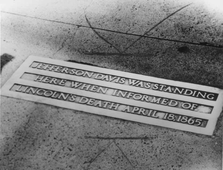 This historic marker is the site where Jefferson Davidson stood on Tryon Street when he learned of President Abraham Lincoln's death on April 15, 1865. Physical Description: 8x10 glossy Publisher: Unknown