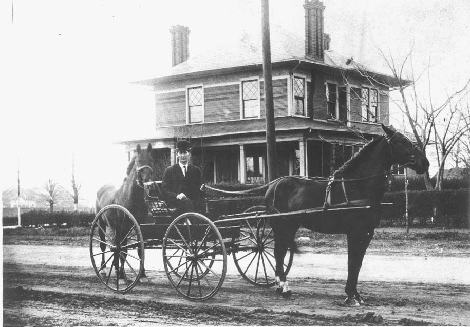 Behind him is the Parker House, which is on the National Register of Historic Places. It was built in 1904, shortly before this photograph was taken, and became 901 Central Avenue once the road was named and the houses numbered. The owner of the house, Charles Parker, operated the Parker Gardner Music Store in Charlotte for a number of years.