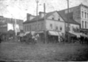 The Square, the intersection of Trade and Tryon Streets in the late 19th century. Physical Description: 4x5 card, 4x5 negative