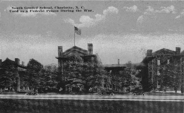 Black and white image of a postcard of South Graded School, which in the beginning was the Carolina Military Institute but used as a Federal Prison during the Civil War. Physical Description: 8x10 glossy Publisher: Unknown