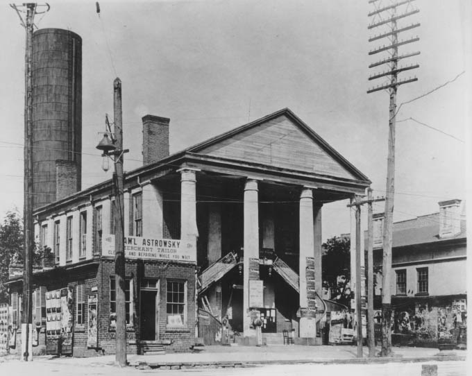The Third Courthouse was located at Church and Trade Streets. Each of the tall, white columns were made from a single pine tree then stuccoed after being milled. It gave the appearance of marble. When the courthouse was torn down, no one recalled this fact, and the workers were surprised to discover perfectly preserved trees beneath the stucco. It was torn down in 1898.