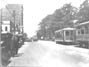 View of streetcars on a Charlotte street.