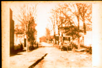 View of a dirt-covered, tree-lined street with an unhitched buggy somewhere in Charlotte.