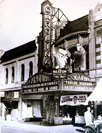 The Carolina Theater opened in 1927 on the corner of North Tryon and Sixth Streets. With a seating capacity of 1,800 and beautiful architectural and decorative features, it remained popular entertainment venue for many years. Today part of the theater still stands and efforts are underway to restore the structure to its initial glory.