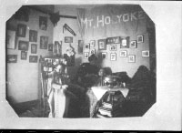 Three young women in Elizabeth College dorm room.