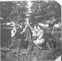Five students posing outdoors. Caption reads, I have a girl in Arkansas.