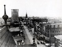 View of South Tryon Street, looking north over Fourth Street toward Independence Square in 1909. The city was decorated for the May 20th celebration and the distinguished guest, President Howard Taft.