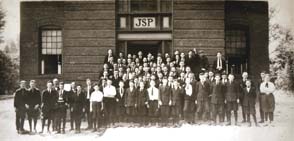 Major J.G. Baird of South Carolina purchased the building once used by the Macon School for Boys, which closed in 1890. Shortly thereafter, Major Baird purchased the school which was then located at the corner of Sixth and Poplar Streets. The Baird School for Boys later moved to the brick building on Poplar Street seen in this photograph. The school continued from 1890 until his death in 1927. The JSP over the entrance way refers to the Latin phrase Juvenes Spes Patriae, (Young men are the hope of the country.)