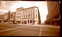 A picture of the Home Federal Savings and Loan Building prior to its demolition in 1965. Located at the corner of Fourth and Tryon Street, the photograph was taken on April 1, 1965. This building was once the Buford Hotel.