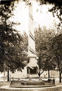 The Signer's Monument in front of the Fourth Courthouse was decorated in honor of Meckelnburg Declaration Day.