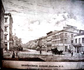 Drawing of Independence Square, intersection of Trade and Tryon Street.