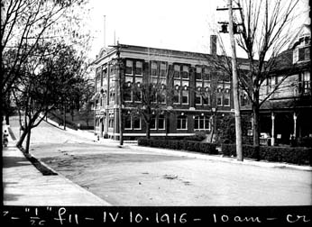 This image of the North Carolina Medical College was taken on April 10, 1916.The North Carolina Medical College was chartered in 1892 at Davidson College. The upper graduates moved to Charlotte in 1903 because of the new Presbyterian Hospital. The entire medical college moved into this building Charlotte in 1907. It is located on the southeast corner of Sixth and Church Streets. The school closed in 1913. Today the building has been renovated for apartments.