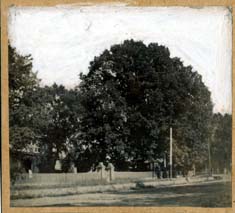 The Osborne Oak was located at West Trade and Graham Street. It was more than a 100 years old when this photograph was taken. The home belonged to Dr. Sam Hayes who married an Osborne.