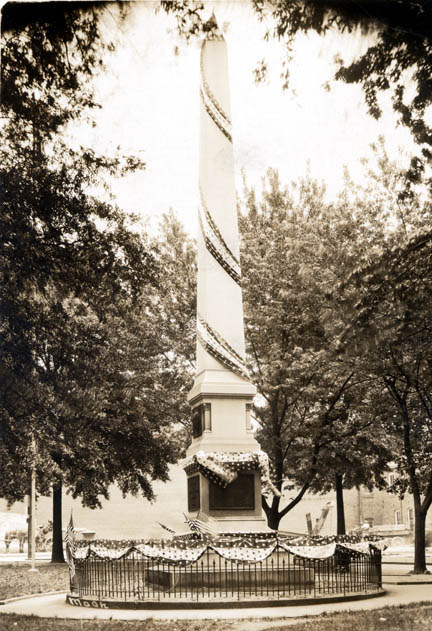 The Signer's Monument in front of the Fourth Courthouse was decorated in honor of Meckelnburg Declaration Day.