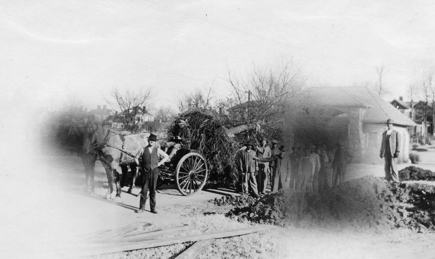 Faded image of crew planting an oak tree in Myers Park. Physical Description: 5x3 Publisher: Unknown