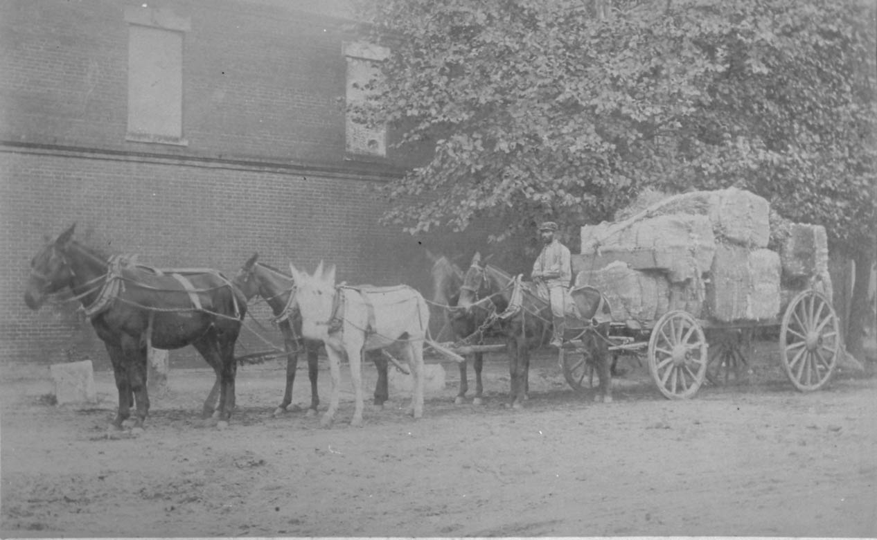 Mule driven wagon transporting cotton to market. Physical Description: 4x5 negative Publisher: Unknown