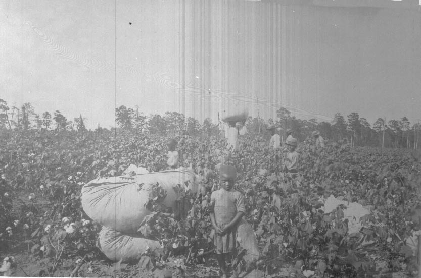 Cotton pickers waiting to load the wagons. Physical Description: 4x5 negative Publisher: Unknown