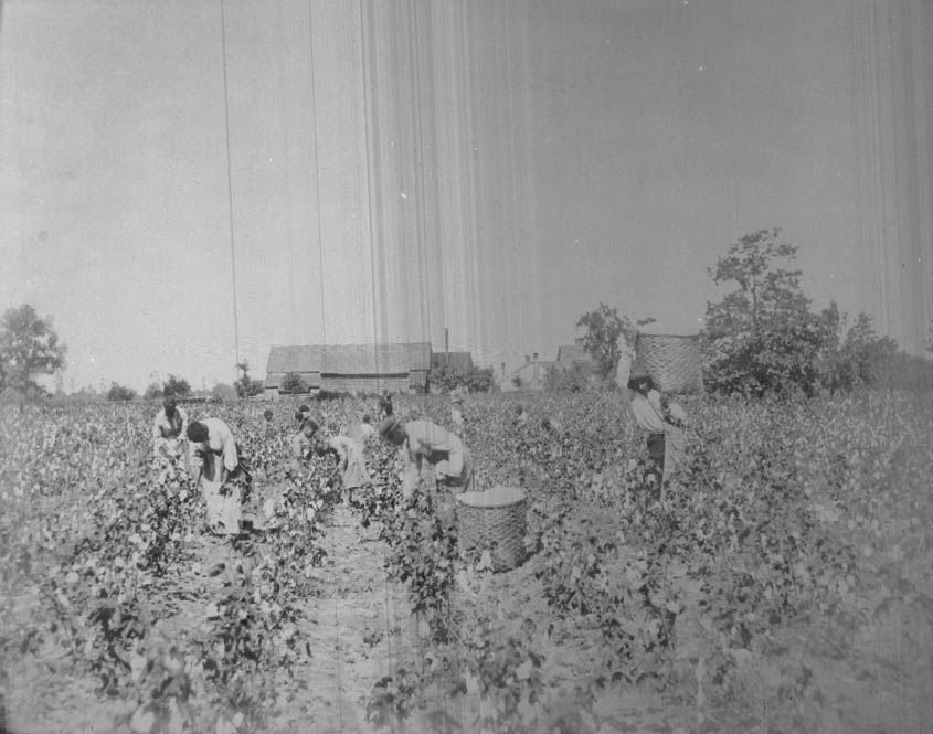 Field hands working in cotton fields Physical Description: 4x5 negative Publisher: Unknown