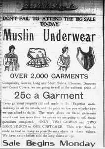 Undergarments for children were simple one piece items known as a union suit. In the summer, they were short sleeved and light-weight. Winter weather and lack of indoor heat required a garment of heavier material such as wool, and the sleeves were long. Similar undergarments were designed for men. However, women endured a complicated series of garments that were designed to minimize the waist and enable her to wear the latest fashions that called for a slimmer figure.
