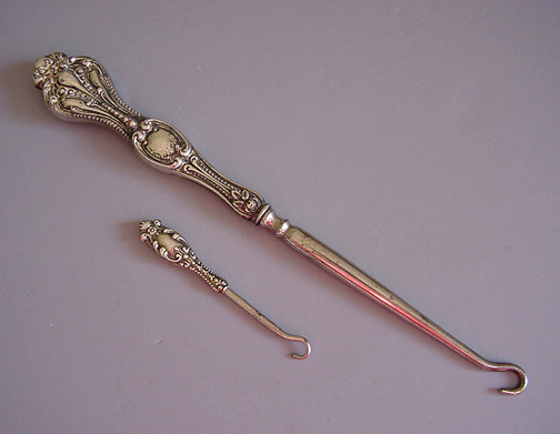 Different shoe styles are not the norm in 1903.  Based on this 1910 advertisement, women had some choices when it came to shoes, but not as many as we do today. The laced up boots seen here were in vogue in 1903 until the late 1900s. To fasten the buttons  a hook was designed to help accomplish this arduous, daily task.