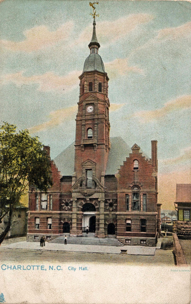 Charlotte City Hall was built Charlotte in 1891. Located on the corner of North Tryon and Fifth Street, it housed not only the office of the mayor and the room where the alderman met, but also the Police and the Fire Department.