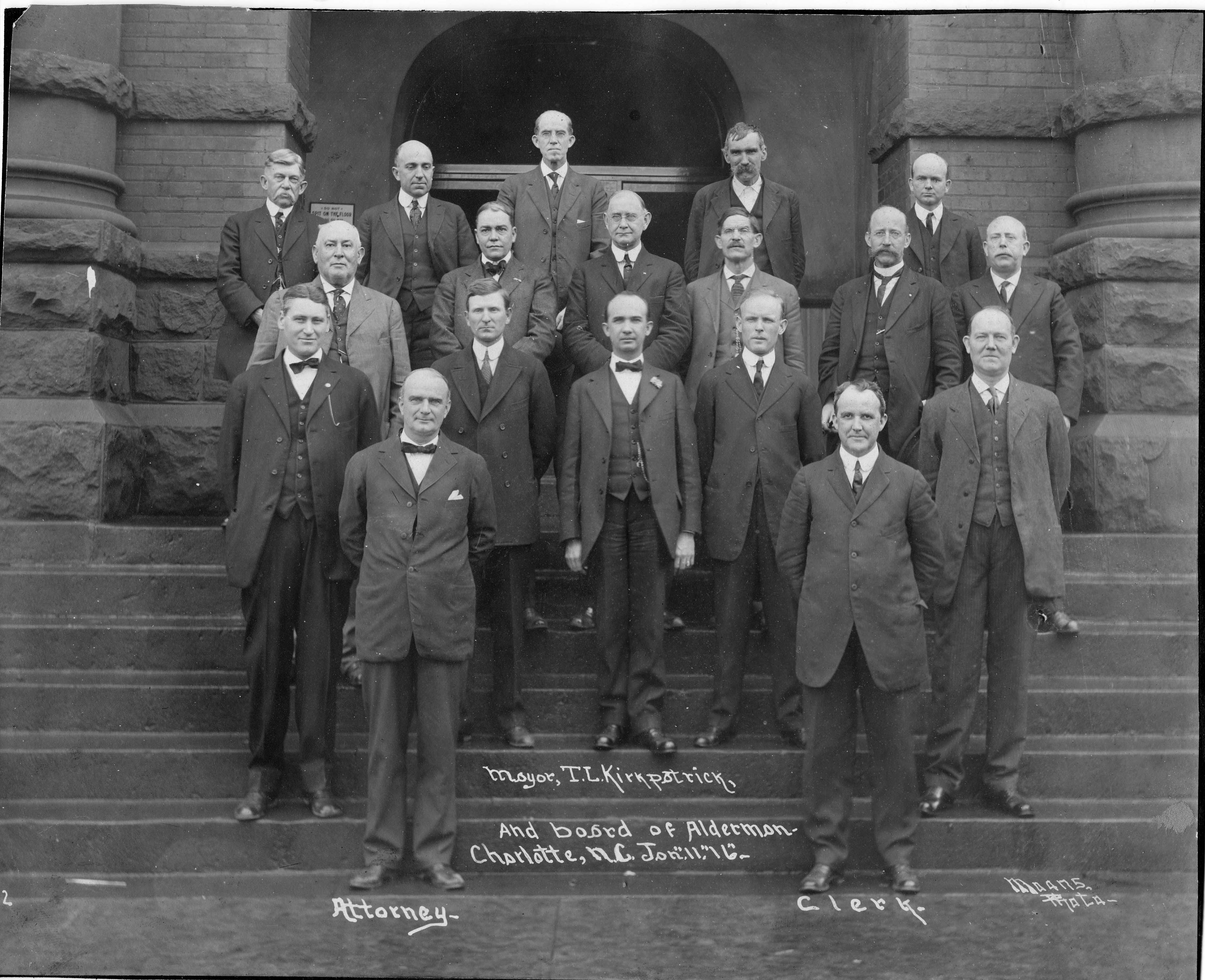 The city police force goes back to 1866 with an Intendent (Superintendent) and eight patrolmen. Besides the Mayor, the various wards of Charlotte elected aldermen to represent their area and help make decisions and laws that were in the best interest of the city. They were responsible for creating funds for street improvements, the schools, the fire and police department, the library and other city departments. The Mecklenburg County Board of Commissioners, as it its known today, dates back to 1868.