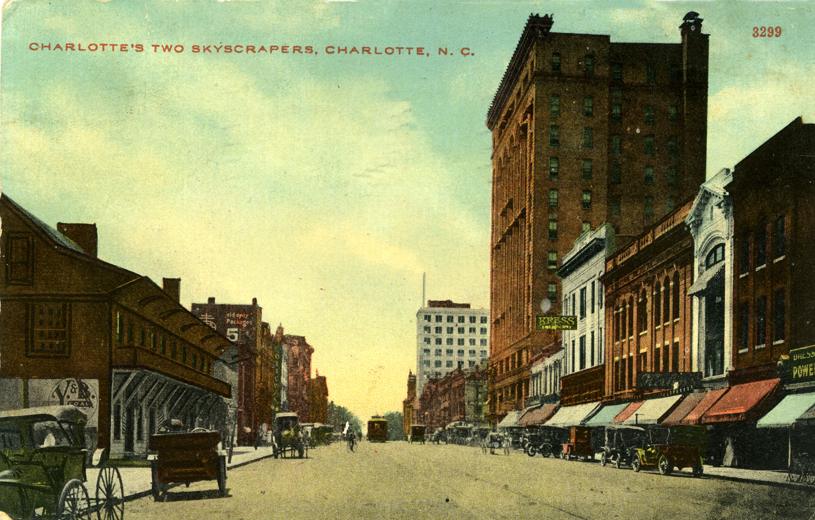 The turn-of-the-century saw the arrival of a new invention, the automobile and the truck. Some were powered by electricty while other inventors experimented with steam power. In the end, gasoline soon became the major source of fuel for cars and trucks. Although there were just a few dealerships in Charlotte in the early 1900s, this new way of transportation quickly became popular. Soon horse driven wagons, carriages and buggies disappeared, a long with livery stables, blacksmiths, and saddle makers.