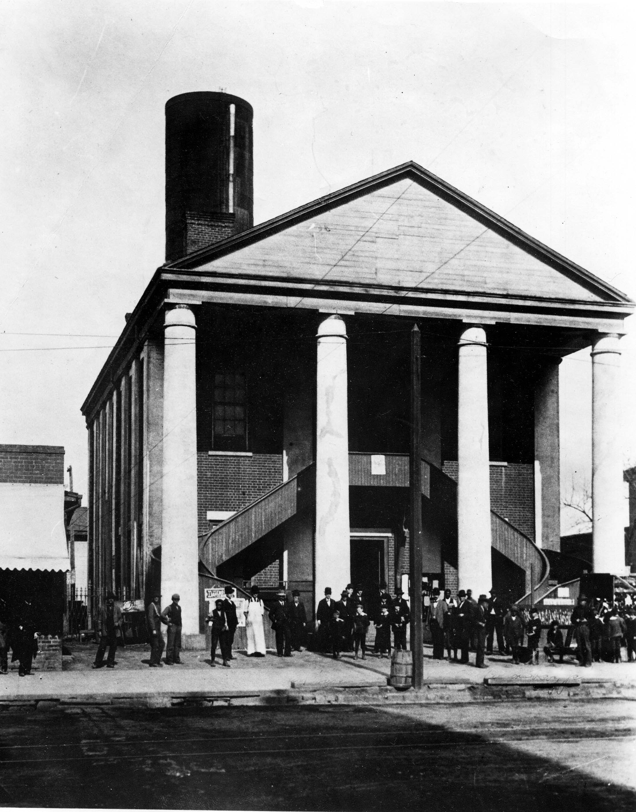 Workers in front of the old courthouse.