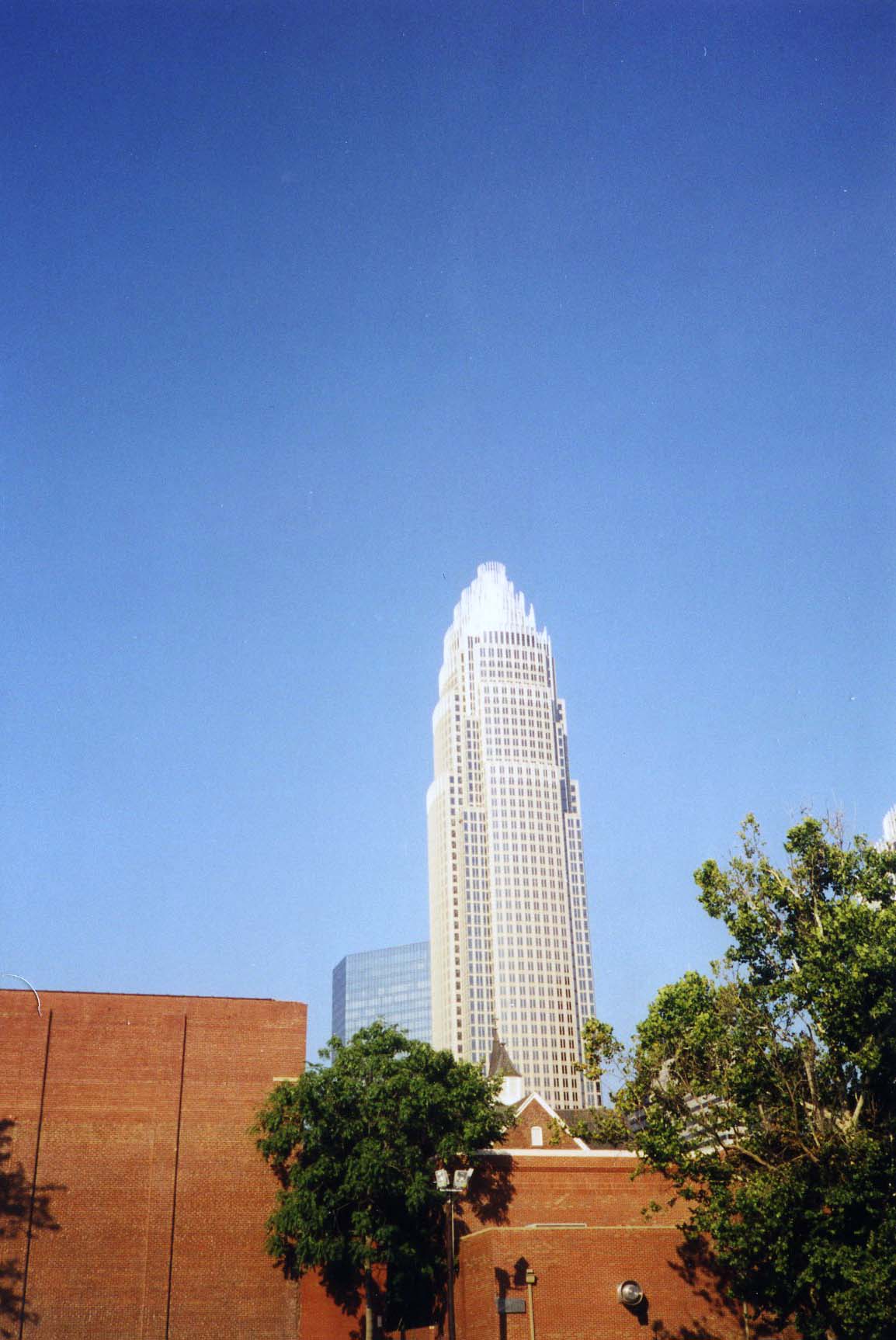 Description: Bank of America Tower, viewed from N. College St. and E. 7th St. in the year 2000. The Hearst Tower had not yet been built in front of it, nor the Bank of America annex to the left.