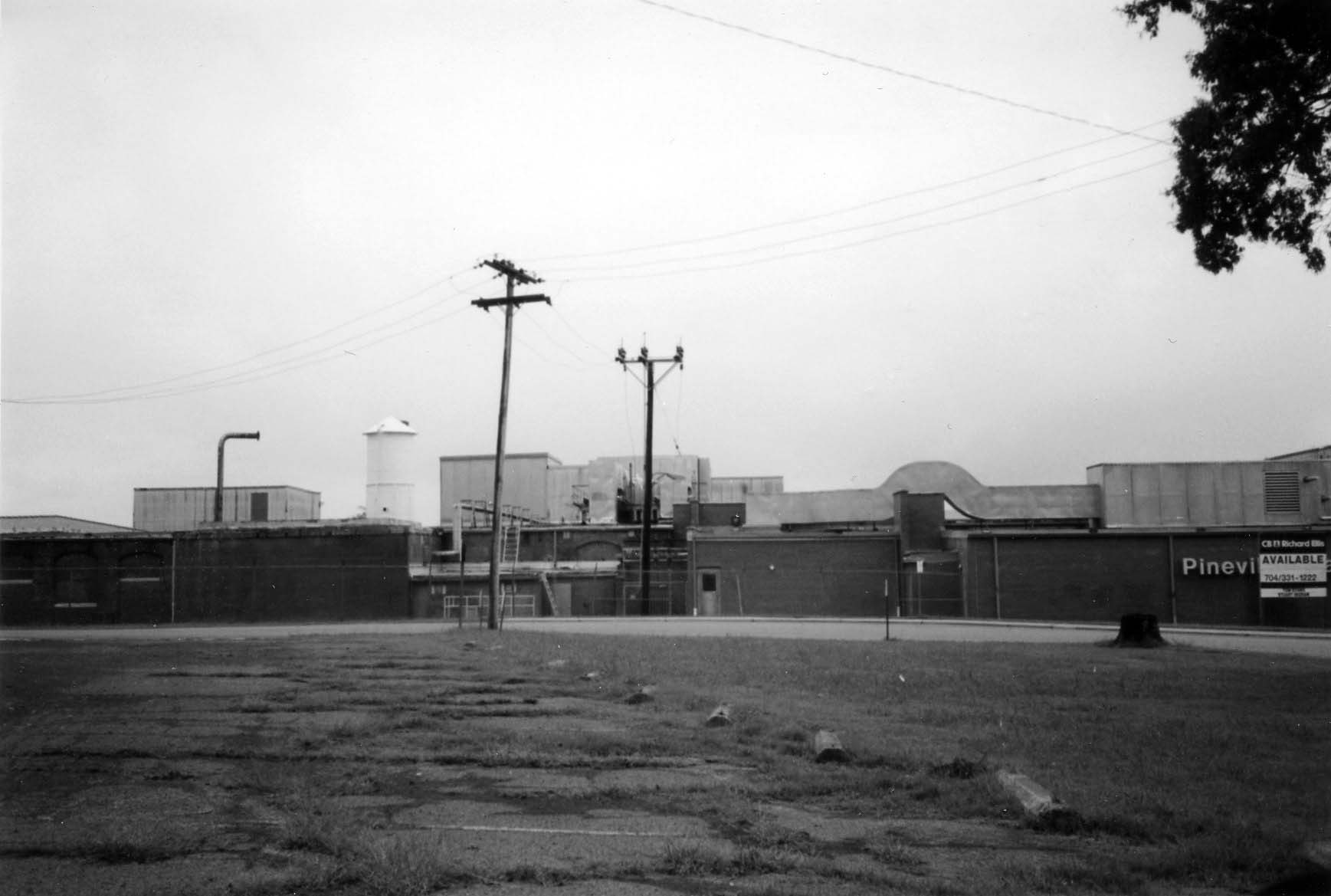 Description: The Pineville Plant of Cone Mills is shown on Cone Boulevard, looking from around the corner, beyond the intersection with Dover Street.