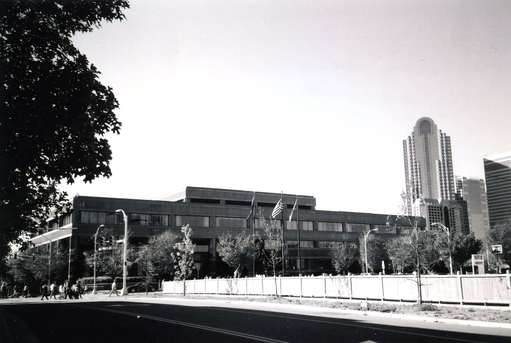 Description: This photograph shows the entrance to the Charlotte Branch of the Federal Reserve Bank of Richmond. It is on the south side of East Trade Street, seen here form Davidson Street.