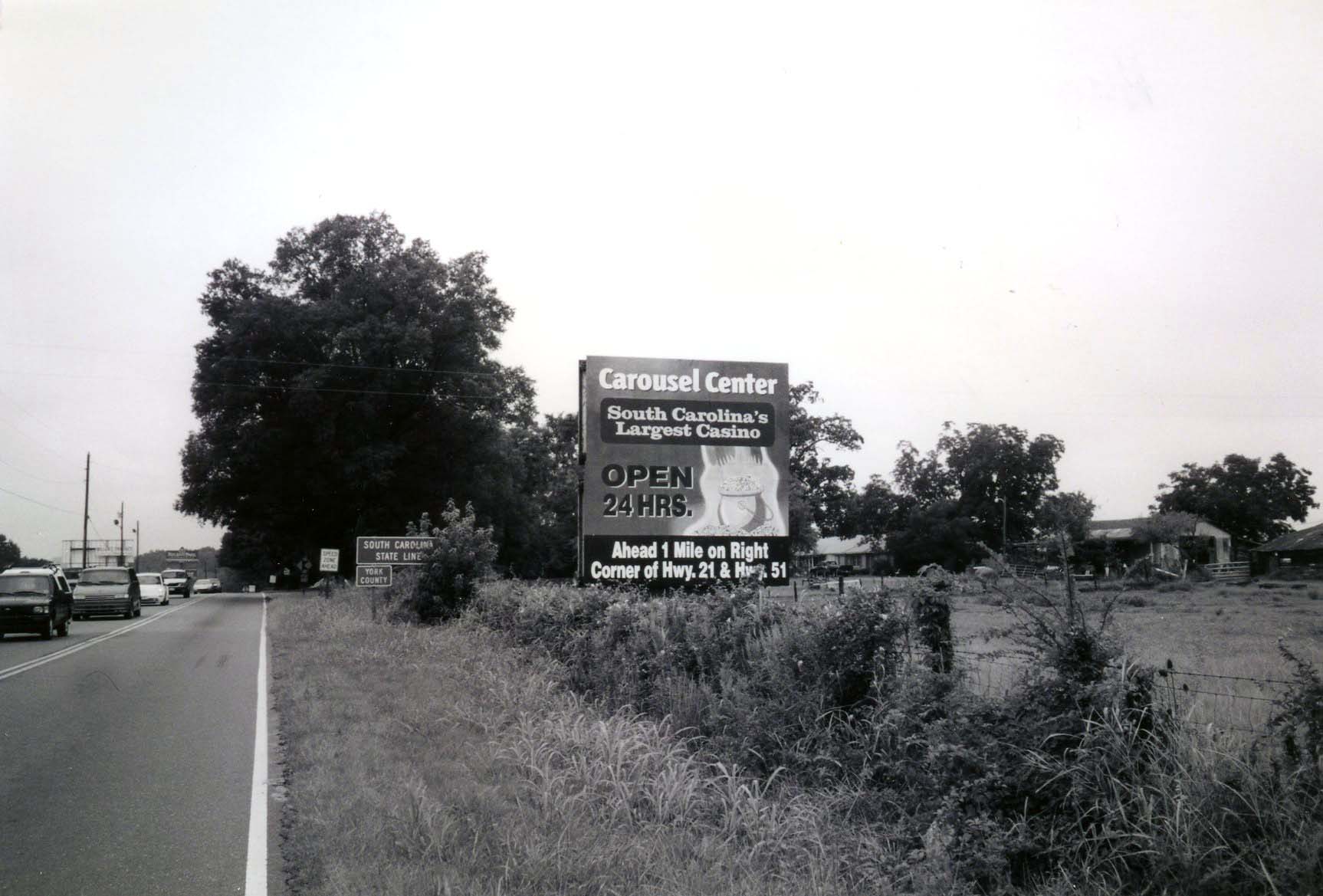 Description: This billboard on the state line advertises a casino that had just been closed by law.