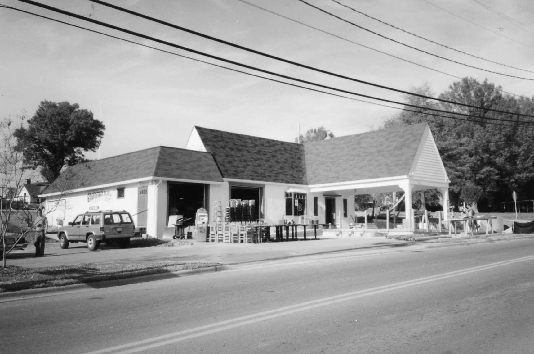 Description: This shows the remodeling of a building into a restaurant that resembles an old gas station.