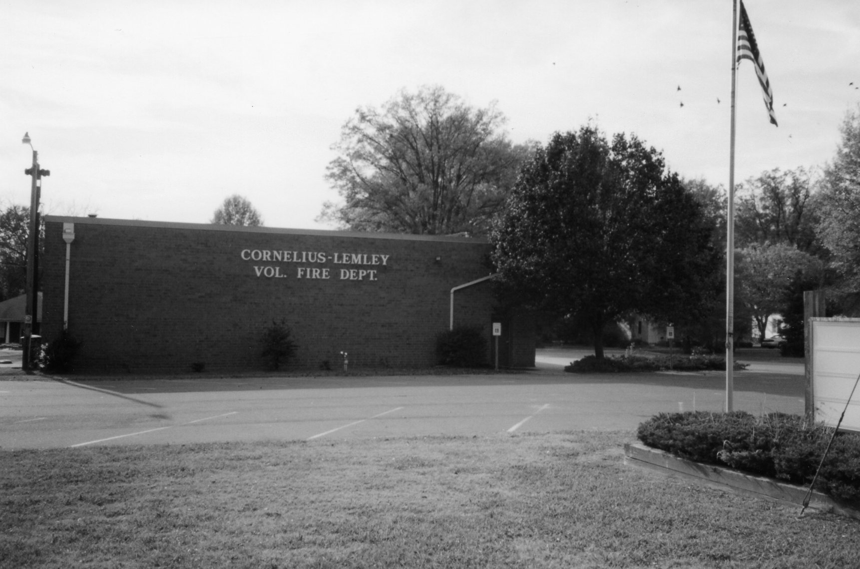 Description: The Cornelius-Lemley Volunteer Fire Department is on the east side of South Main Street near Hickory Street.