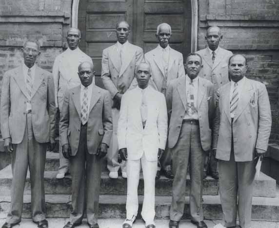 Left to right, front row: James Bratton, Homer Bonner, Porter Connor, Edgar Phillips, the Reverend J. H. Moore.