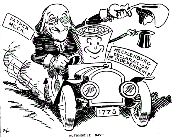 An Automobile Parade and a race at the fairgrounds were the highlights of the 1910 celebration. The Charlotte News, May 20, 1910.