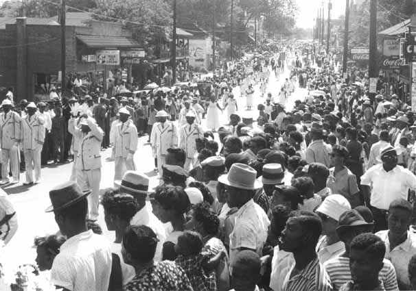 The annual arrival of Bishop "Sweet Daddy" Grace, founder of The United House of Prayer For All People, was a time for an incredible outpouring of religious fervor by the church members. These photographs were taken during the 1958 parade.