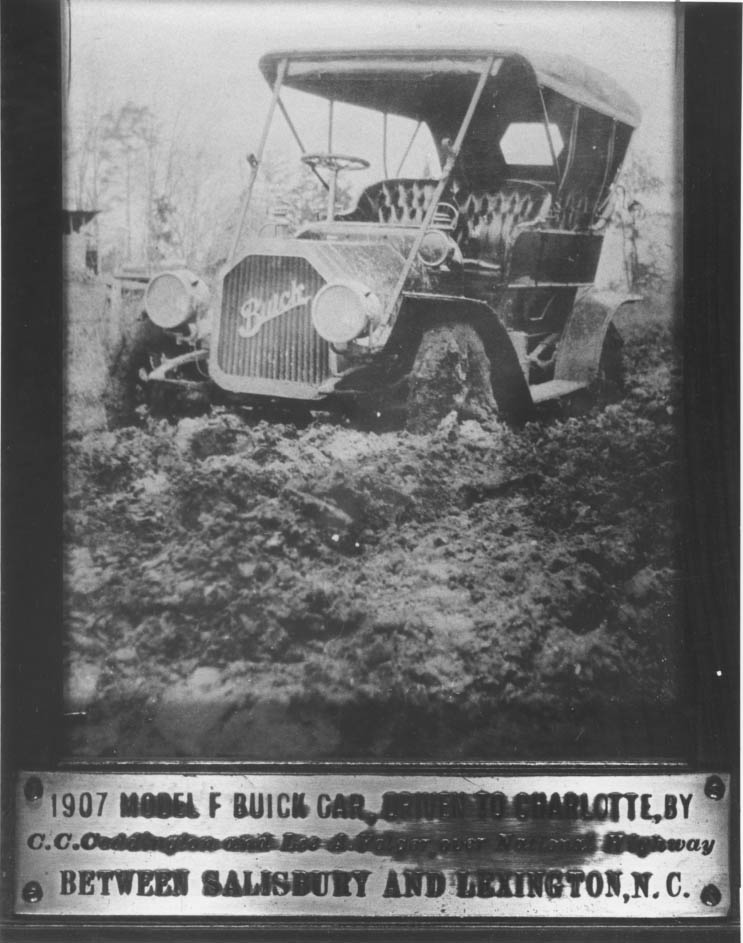 It took awhile before good roads caught up with the automobile. This 1907 Buick was driven to Charlotte by C.C. Coddington and Lee Folger. Unfortunately, the car became stuck in the mud on the National Highway between Salisbury and Lexington, North Carolina.