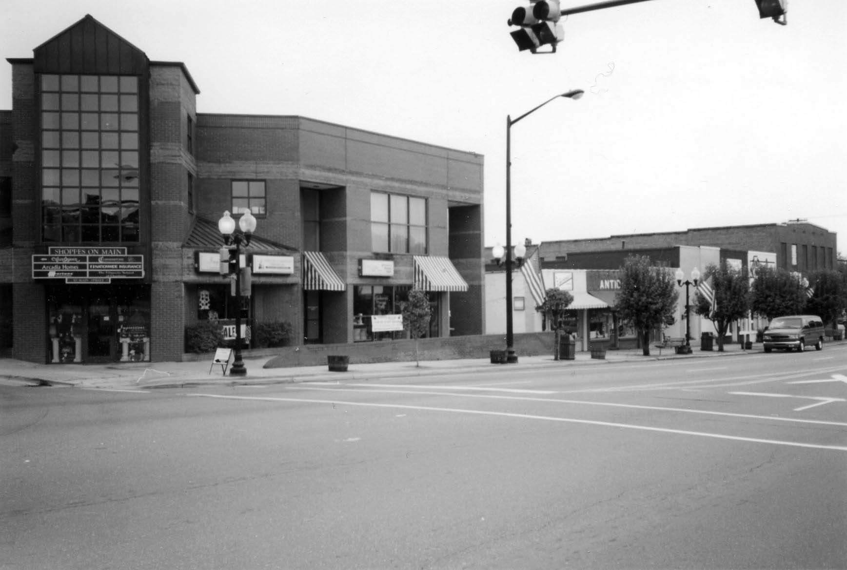 Description: This photograph shows the southwest corner of Main Street and Johnston Drive.