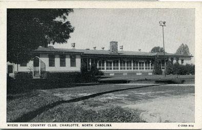 The Myers Park Country Club formed in 1921 with over three hundred members. This is a picture of the first club house.
