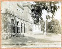Entrance to the United States Post Office in Charlotte. Between 1875 and 1917, the United States Post Office in Charlotte was located at West Trade and Mint Streets. The Assay Office (former US Mint) and the Shipp Monument is visible.