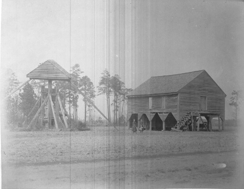 Cotton ginnery and screw press on a plantation. Physical Description: 4x5 negative Publisher: Unknown