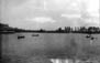 View of Lakewood Park with boats and pavilion in the background. See Charlotte Postcard Collection.