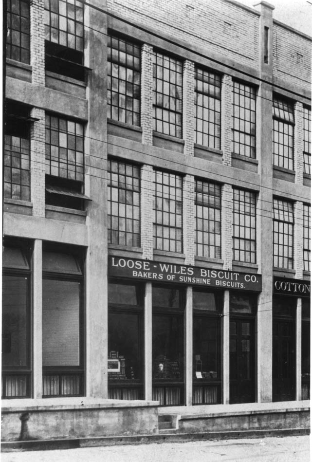 The Loose-Wiles Biscuit Company Offices in the Old Merchandising Row on 212 West First Street. It opened in 1915 under George L. Sibley. He was later President of the Union National Bank and the first chairman of the Charlotte Planning Commission. Physical Description: 8x10 Publisher: Unknown