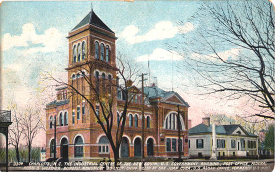 The United States Post Office, Assay Office, and the Shipp Monument on Mint Street. Physical Description: 3x5 Publisher: Stone and Barringer Publishers