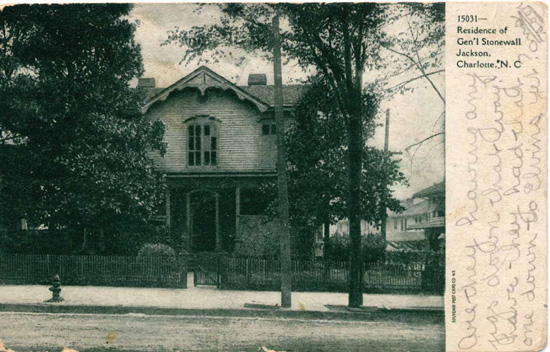 The first home occupied by Anna Morrison Jackson in Charlotte following the death of her husband, General Stonewall Stonewall Jackson. Physical Description: 3x5 Publisher: Souvenier Postcard Company