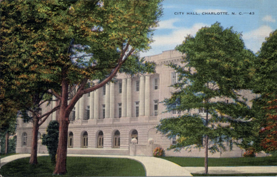 Charlotte City Hall, located on East Trade Street, was first occupied in 1927. Physical Description: 3x5 Publisher: E. C. Kropp Company